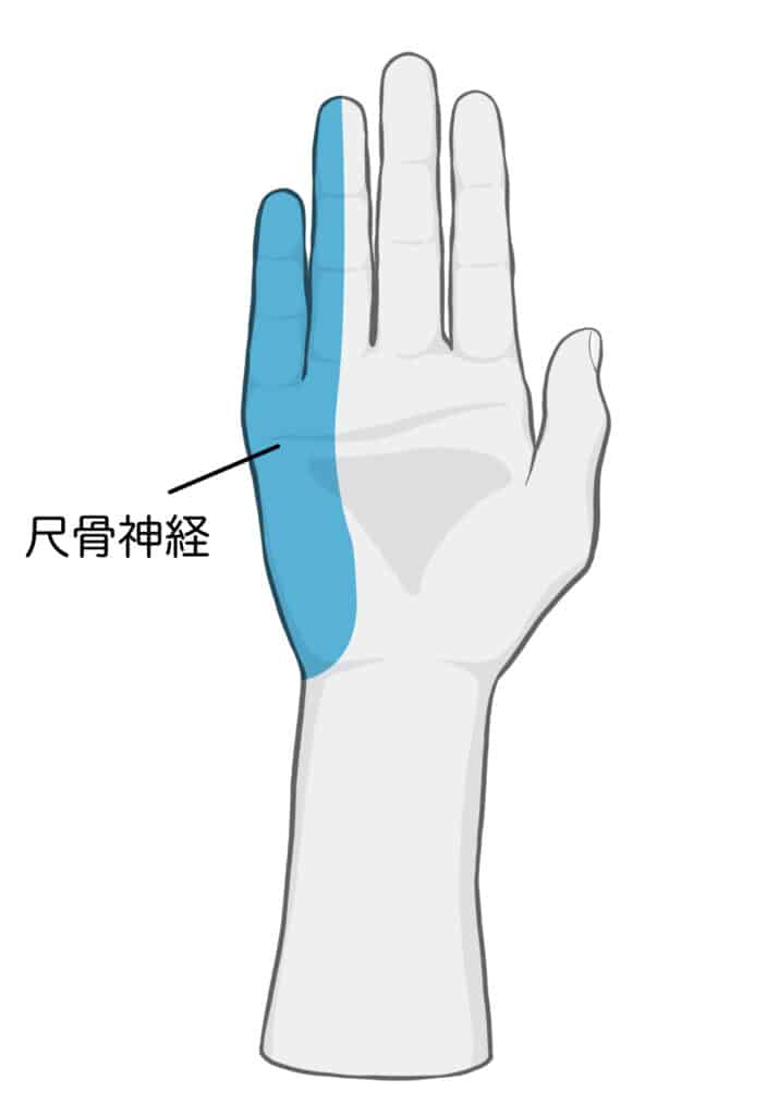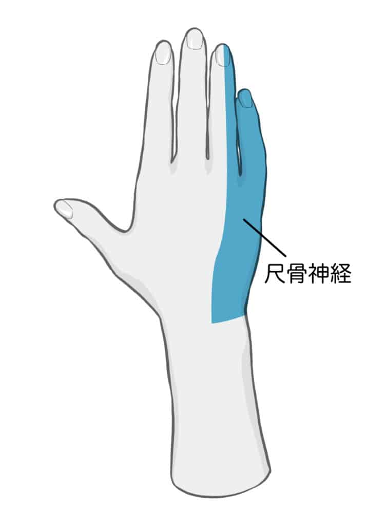 肘の後ろ(肘部管)や腕の筋肉の内側で神経圧迫が起こりやすく